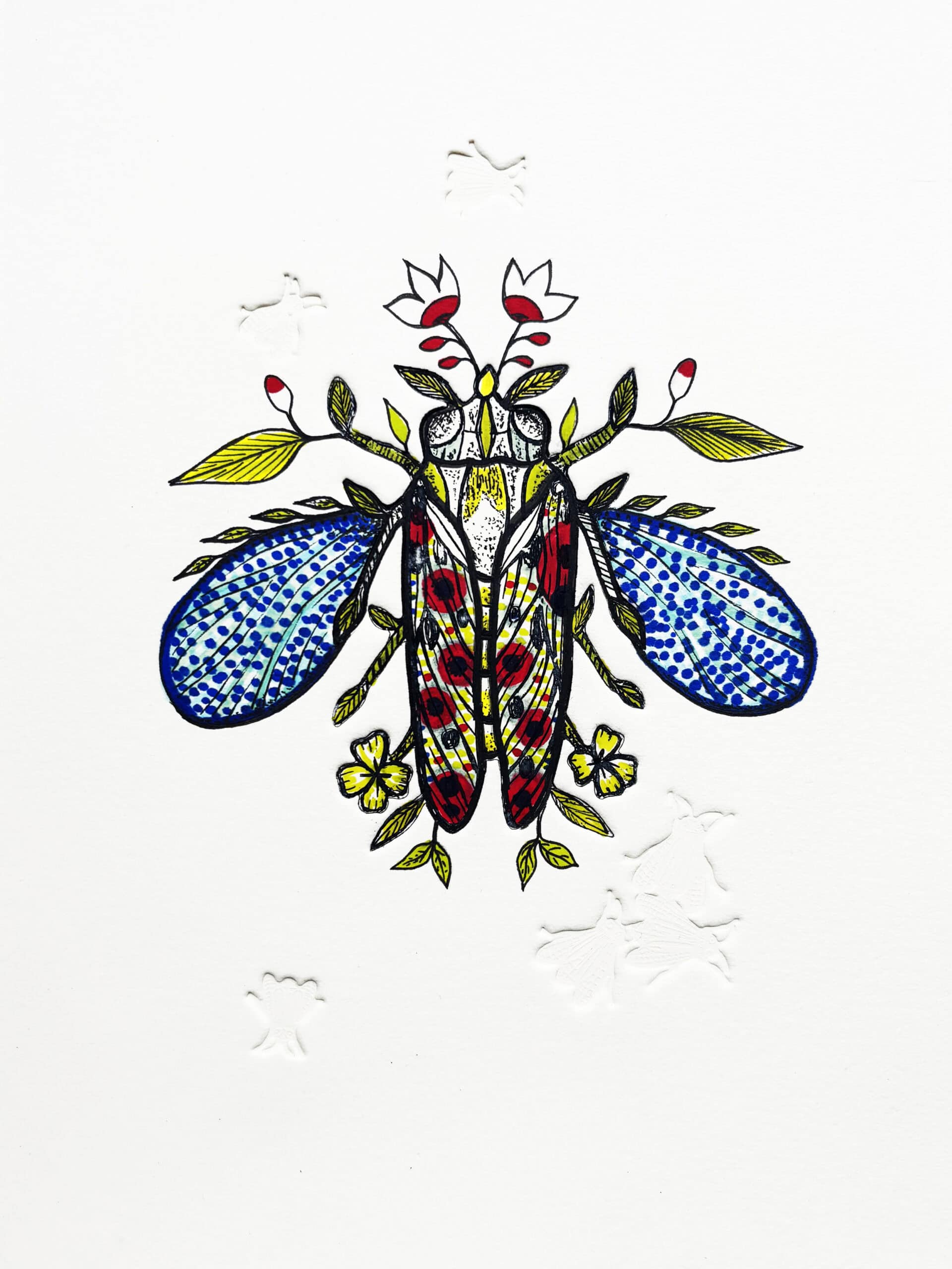 Réalisée en 2025, La lumineuse s’inscrit dans le travail de longue date de Michaël Cailloux sur les insectes, qu’il explore depuis ses premières recherches.