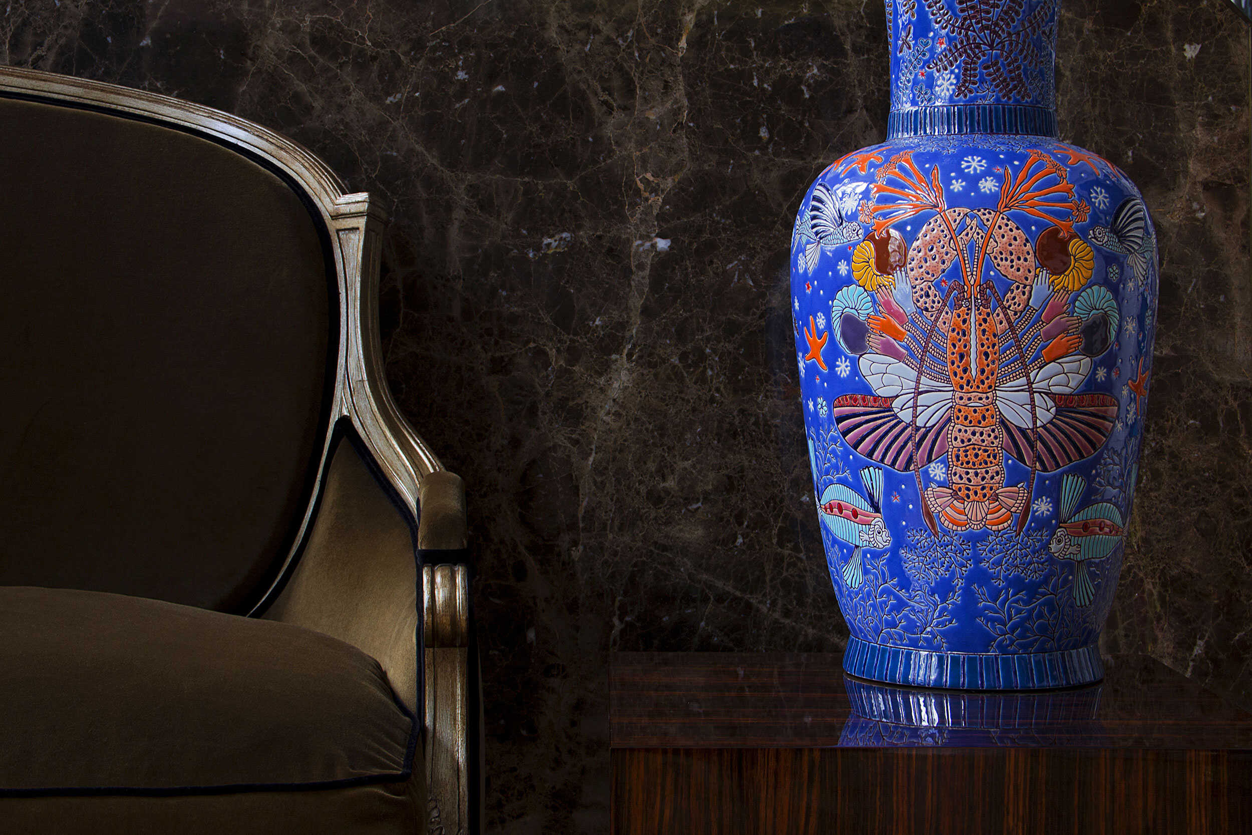 Autre projet ambitieux, la réalisation de Pince-Moi, une œuvre unique représentant un homard ailé et anthropomorphisé avec Les émaux de Longwy. Chaque détail de ce dessin complexe, initialement conçu en gravure à l’eau-forte, doit être traduit en émail cloisonné, ce qui impose une précision extrême dans le tracé et la délimitation des couleurs. Le défi est d’autant plus grand que l’émail, lors de la cuisson, modifie légèrement sa teinte et sa texture, nécessitant de nombreux ajustements pour conserver la richesse et la profondeur du dessin original. Après plus de deux ans de travail, cette pièce devient un véritable chef-d’œuvre de l’émail, incarnant à la fois l’excellence artisanale des émaux de Longwy 1998, et la vision poétique de Michaël Cailloux.