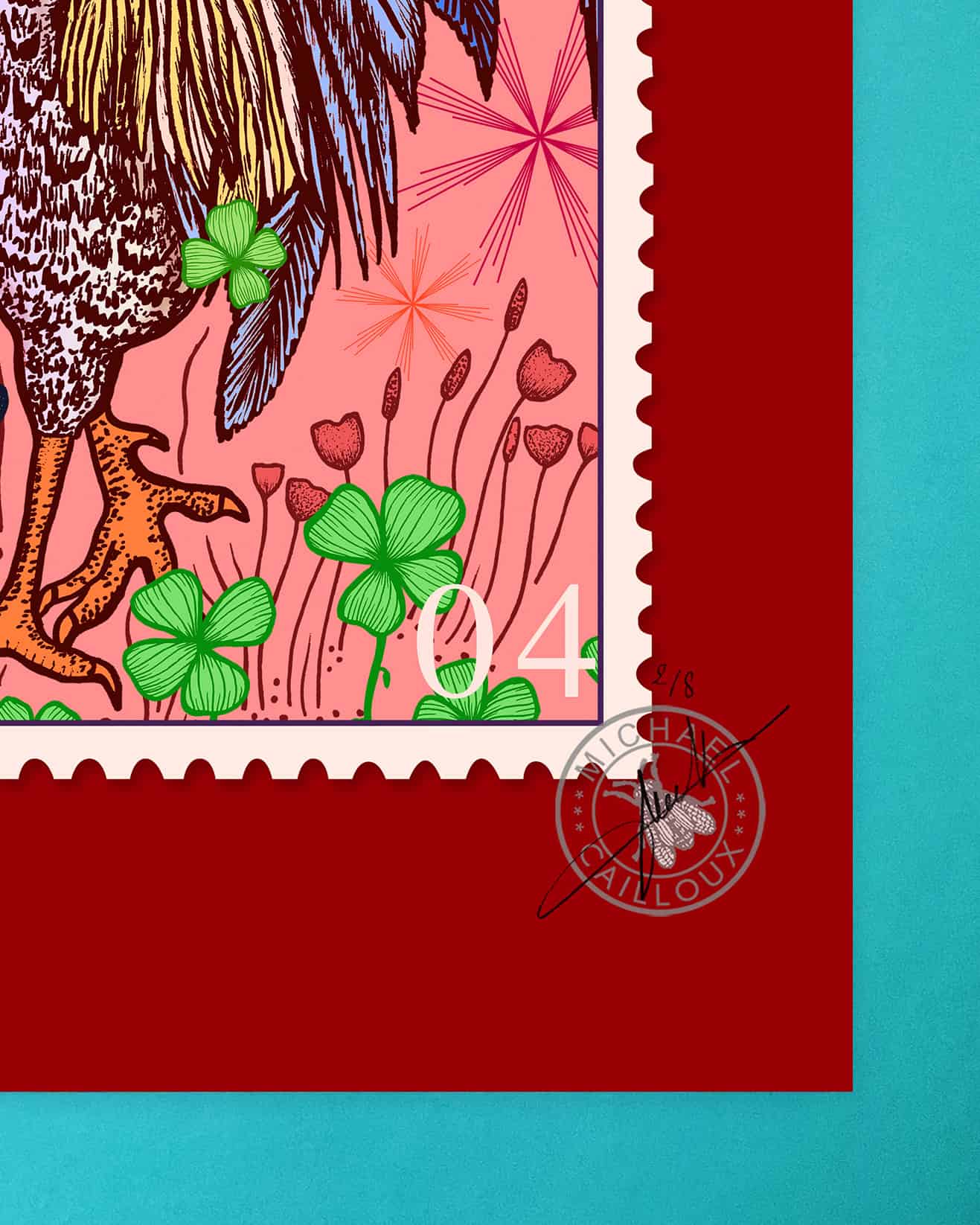 Dans la série Correspondance (2025), Destination Porto révèle un fragment du Portugal rêvé par Michaël Cailloux. Transformé en tableau, ce timbre laisse flotter le souvenir entre mémoire et imaginaire. Signé, numéroté et limité à huit exemplaires, il fait partie de la collection de onze destinations, à contempler et à parcourir pour prolonger le voyage.